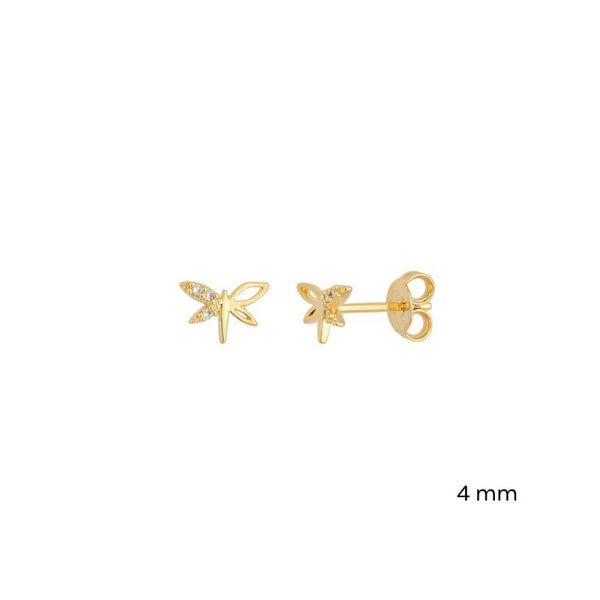 Boucles d'oreilles libellule avec zircone, plaquées or 18 carats, hypoallergéniques, garanties 1 an.
