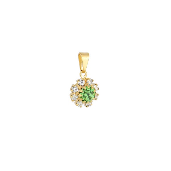 Pendentif fleur avec strass et cœur coloré, plaqué or 18 carats