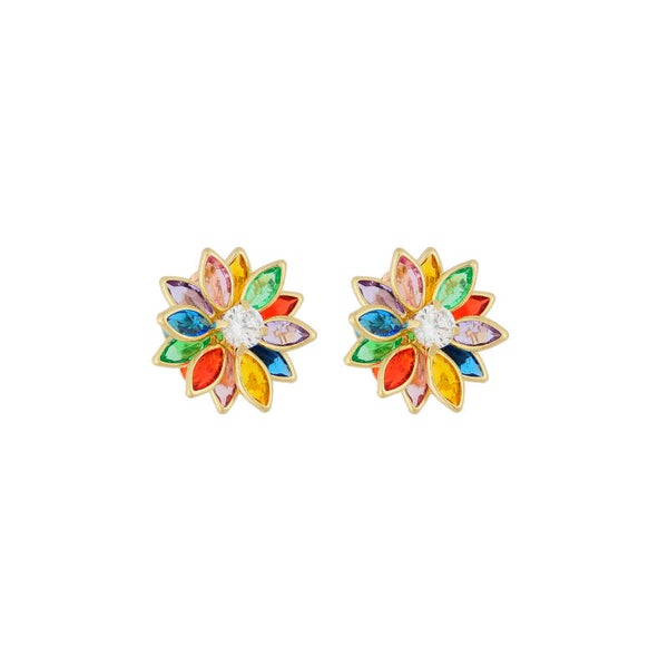 Boucles d'oreilles fleurs multicolores, plaquées or 18 carats, hypoallergéniques, garanties 1 an.