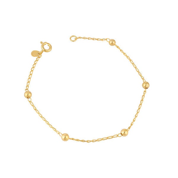 Bracelet boules de 4 mm plaqué or 18 carats, hypoallergénique, garanti 1 an. Taille : 18 cm.
